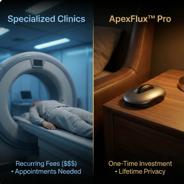 ApexFlux™ Pro brings clinic-informed pelvic health technology into your daily routine by combining low-frequency PEMF therapy with guided vibration—designed to support circulation, nerve responsiveness, pelvic floor balance, and natural male performance.