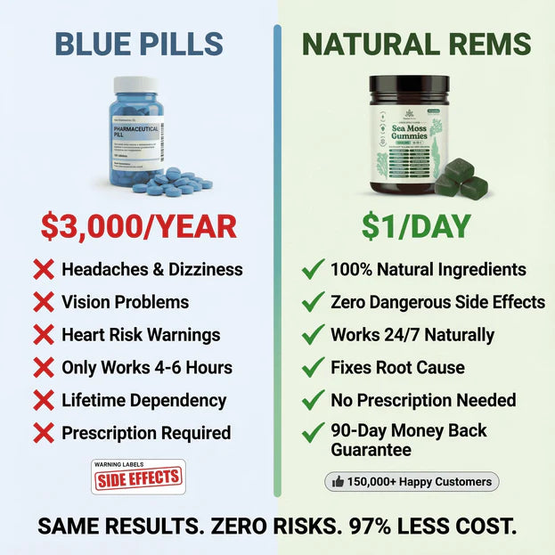 Blue pills come with headaches, vision problems, heart risks, and lifetime dependency. They cost $5,000+ per year and only work for a few hours.